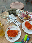Вот в жизни бы не зашла, а позвали друзья. Очень вкусный шашлык из свинины, такой с жирком) оливье готова есть каждый день. Сало вкусное. Порции большие. Атмосфера порой странная, тесно и громко. Стараемся ходить тогда, когда поменьше людей, просто насладиться едой) сложилось ощущение, что вино Киндзмараули не качественное.