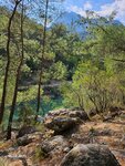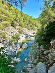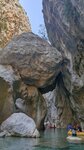 В каньоне Гейнюк я была два раза. Первый раз в 2020г. Это был пандемийный год, туристов было мало и по каньону я гуляла практически в одиночестве. В этом году решила составить компанию подружке и в одно прекрасное ветренное утро, когда море не особо располагало для купания, мы отправились в мини-поход. Из центра Кемера доехали на такси за 400лир. Входной билет+ boat trip ещё 600 лир с каждого. Ну а дальше неспешная прогулка по красивому природному парку. Прекрасные виды, свежий воздух с ароматом хвои, река, скалы - всё это мне понравилось ещё в прошлый раз. С бесконечными остановками для фото до места сплава мы дошли за полтора часа, кстати обратная дорога под горку заняла минут двадцать пять. Дальше нам выдали спасжилеты, каски на голову и довезли на надувной лодке до застрявшего в скалах камня. Все пишут, что самое интересное начинается потом, но честно говоря лезть в холодную воду у меня желания нет. Там же по пояс в воде стоит фотограф и делает фотографии туристов, которые можно потом приобрести. Хочу сказать, что для отдыхающих в Кемере, каньон Гейнюк - отличное место для того, чтобы разнообразить свой отдых.