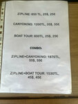 Актуальные цены на май 25 года С весом больше ста кг на зиплайн не пускают (деньги вернули), добирались из Кемера на автобусе ТА08, высадили нас возле арки ГЕЙНЮК, шли пешком через реку по офлайн картам, по времени минут 40, говорят, можно выйти возле асфальтированной дороги, попросив водителя, но там нет никакой остановки, просто трасса. Обратно шли по основной дороге, ловили автобус голосованием на трассе, доехали до Кемера без проблем Катание на лодке понравилось , правда попался русскоговорящий перевозчик, который рассказывал о своей непростой судьбе и напрашивался на чаевые В 30 долларов входит лодка + джип туда-обратно