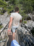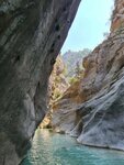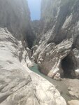 Этот каньон мне понравился больше, чем Сакликент. Каньон расположен в 9 километрах от Кемера на юге Турции. Сам каньон — ущелье шириной примерно 6 метров (иногда больше, иногда меньше) и высотой до 350 метров. Со стен спадают многочисленный водопады, вода — насыщенного голубого цвета, а на берегах реки в широкой ее части растут сосны. От входа в парк до каньона нужно пройти около 3 километров в одну сторону, подъем по высоте, примерно 150 метров. Тропа несложная, дорога грунтовая. Кстати, для тех кто не хочет идти, если довозка прямо к каньону. Но я советую, конечно, идти пешком. По дороге открываются шикарные виды. ❗️Не пропустите подвесной мост по дороге на каньон. Где-то по середине пути, перед подъедом более крутым вверх, справа мост. Перейдя по нему есть лесная тропинка, которая тоже выведет к выходу. За отдельную плату можно заняться «каньонингом» — прохождением по реке, текущей в каньоне с перемежающимся участкам широкой воды и брода. ✔️Путь проходит по реке в самых узких частях каньона. В некоторых местах можно дотянуться до стен разведенными в стороны руками.
