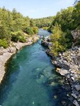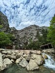 Всем, привет. Посетили каньон самостоятельно . Отдыхали в Гейнюк и решили сходить в каньон пешком. Яндекс проложил маршрут и мы с сыном, в течение часа до него дошли из отеля, через городок Гейнюк. По тихим и безлюдным улочкам, любуясь горами, яркими цветами и гранатами, свисающими практически на каждом углу. Дорога после городка идет по правой стороне реки Гейнюк, через сосновый лес и доходит практически до входа в каньон. Вход платный -5 $ / чел. Этот билет дает вам право пребывать на территории заповедника, осматривать его без ограничения по времени. По ходу движения вдоль каньона есть кафешки, водопады, заводи и мини дамбы. Благоустроен пляж, где мы спокойно дважды поплавали в горном озере. Вода прохладная, но комфортная. Дорога постепенно набирает высоту…. Вы увидите переходной висящий мост над пропастью. Мы по нему прошлись, сделали фото и дальше пошли. Природа во всей своей первозданной красоте. Дошли до самой узкой части каньона. Здесь можно купить дополнительный билет и прокатиться на надувной лодке с инструктором или в жилетах, каске, аквасоксах поплавать с инструктором по самому каньону. Билет стоит 35$ . Мы не стали. На обратном пути снова зашли на пляж и поплавали в горном озере. Общее время прогулки составило около 4,5 часов и дистанцию 12 км. Рекомендую посещать утром, не будет так жарко. Взять купальники и плавки для плаванья в горном озере. Удобная обувь необходима,желательно кроссовки, тк дорога каменная, горная. Кепки, воду. Разнообразить свой пляжный отдых. И как минимум, сэкономить 50$ на человека.