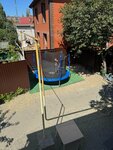 Отдыхали в конце августа прошлого года с тремя детьми 12, 6 и 1,5 года. Гостевой дом очень понравился! Прекрасные номера и дружелюбная атмосфера. Снимали 2 номера: один двухкомнатный, другой однокомнатный. Оба номера современные, чистые и уютные. Есть всё что необходимо. Во дворе столики и мангал, на общей кухне есть микроволновка. Всё приспособлено для отдыха с детьми. Есть и детская кроватка, развлечения и игрушки во дворе, в т.ч. беговел, скейт, самокаты. Особенно полюбился детям батут! Есть даже готовые надутые круги - бери и беги на море. Место очень тихое для спокойного отдыха. За развлечениями надо ехать на набережную. Если хотите много купаться, то тоже лучше ездить на косу или на центральный пляж. Здесь море очень мелкое и взболомученное, пляж маленький и не оборудован.