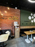 Зашли в кофейню случайно. Внутри нас встретили приветливые девушки бариста. В полной мере ознакомили нас с меню. Было очень интересно слушать. Помогли определиться с напитками. За это отдельные 5 звезд. Внутри достаточно уютная атмосфера, много места, для каждого найдется свой уголок. Пока ждали напитки, сильно увлек отдел с сувенирной продукцией. Ждем вашего открытия и в нанес городе Клин!