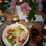 Заказывали их фирменный салат с креветками, креветок там было всего 3 штуки, как считаете, достаточно для салата с креветками? Как по мне - нет. Паста карбонара очень пересоленная. На каждом столе стоят бутылки с водой, имейте ввиду, что они не бесплатные, и об этом вам, конечно же, никто не скажет, просто потом принесут чек, где каждая бутылка стоит 600 рублей))) Хотя цены на сами блюда априори выше, чем, в среднем, в любом точно таком же ресторане. Идти сюда крайне НЕ РЕКОМЕНДУЮ. Впечатления ужасные.