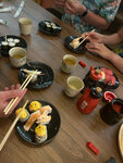 Приятная атмосфера. Вкусная еда ( особенно Моти). Интересная, необычная подача. Очень удобна идея с чаем. Кипяток наливаешь сам, сколько понадобится, сидя за своим столиком. За каждым столом планшет, с которого можно сделать заказ, например супов или вок. Поезд привезет ваш заказ к вашему столику. Имбирь вкусный, васаби ооочень острый. Чай ароматный. Можно было бы немного разнообразить ассортимент роллов, а так все великолепно.