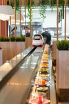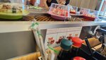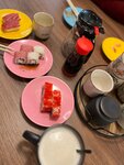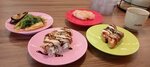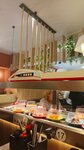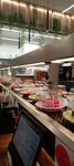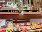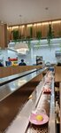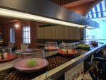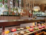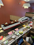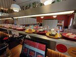Приехали в волжский специально ради этого места и не пожалели! Очень удобная система подсчета и благодаря небольшим порциями можно попробовать много всего за адекватные деньги) понравилась свежая рыба и лангустины в блюдах. Также взяли супы 2 вок, все приехало на маленьком синкансене) также можно налить чай в чайничек на столе бесплатно