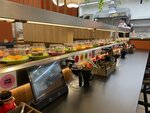 Одно из наших любимых местечек в городе.Тут всегда вкусная еда в том числе и готовая, можно пока ждёшь, перекусить готовыми роллами, попить вкусного чая, кофе, а ещё тут много топовых новинок, уютно спокойно. Вежливый персонал, которые как чип и дейл, всегда придут на помощь, все расскажут и покажут.
