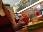 Короче просто нету слов , насколько это место офигенное. Я не то чтобы отзыв , я вообще никому не хотела про него рассказывать. Сначала решила только бабушке , потом маме , а она пошла уже всем рассказывать и оказывается её коллеги уже там были , хотя на минуточку мы с соседнего города Волгограда , а ресторану меньше года . Но про него уже многие знают (самые праворные , теперь среди них и вы ) это 1. 2. Самое главное за что можно полюбить этот ресторан , это впервые в нашем городе и наверное в области , ресторан с конвеером . То есть тебе не нужно ждать после заказа блюда, ты пришёл, сел и сразу можешь брать понравившиеся блюдо и кушать . 3.ресторан БЕЗ официантов, есть только администраторы, которые пригласят вас из зоны ожидания и проводят за стол , если вы в первый раз , то все подробно объяснят. Еду заказывать можно по планшету , который стоит на столике , и причём на МИНУТОЧКУ , вам привезут еду на мини ПОЕЗДЕ . 4.у них нет брони столов , есть зона ожидания, диваном, кондиционером и большим электронным столом с играми для детей . Даже придя в самый пик , когда все столы были заняты и перед нами было 3 семьи, мы продали максимум 20 минут , за это время спокойно успели осмотреть весь интерьер , пообщаться , а там уже пригласили за стол 5. Ну наконец то поговорим о еде . Если кратко ТО это невероятно вкусно и за приемлимую цену . Ну ни где вы в городе не увидите, где кладут такое количество рыбы на ролл. Тарелки на конвеерной линии по цветам , в зависимости от цвета и разная стоимость.я предпочитаю блюда на зеленой торелочки. За месяц данное заведение посетила 4 раза , могу порекомендовать следующие блюда : Салат с морской капустой, осьминогом и мидией , суши с угрем и лососем , лапшу с угрем просто невероятно , а для тех кто любит мясо , попробуйте с переменной свининой и беконом, так же хороший супчик фо бо и на десерт дубайский моти ( на вкус как холва , кому нравится)) 6. Ну стоит упомянуть , что 2 вида чая имбирь и вассаби с соевым соусом бесплатно, можно есть сколько хочешь . 7.ну и по мелочам, но приятным. Есть как и вилки так и палочки , для палочек есть красные подставки , в туалетах даже в пик было чисто. P/s думаю не надо отдельно говорить про этот невероятный кусочек лосося с фото )))**))