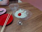 Очень понравилась подача блюд, интересная идея с цветными тарелочками. Оформление зала 5 баллов! Поезд, привозящий заказ, - это просто восторг! Бесплатный чай и соус, красивая посуда. Организаторы - гении маркетинга, очень хочется прийти сюда еще. Единственное предостережение: осторожнее с перечным мороженым, очень нетрадиционное сочетание мороженого, жареного и зеленого лука