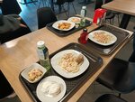 Еда в основном приличная. Хотя крайний раз, 31.01.24 зашёл перекусить, положили 5 картошин на гарнир, весом ну не более 100 гр, хотя подозреваю выход порции должен быть не мене 200-260 гр. Не стал вступать в дебаты, тем более весы в зале не увидел. Есть микроволновки в зале, чтобы подогреть, ибо на раздаче выдают холодное, по всей видимости мармиты не работают. Честная 4. Может даже 3.5