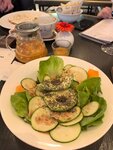 Красивое заведение, где царит атмосфера 20-х годов. Много воздуха и пространства, стильный дизайн интерьера, натуральные материалы. Внимательный, приветливый персонал. Меню довольно разнообразное, потратила на изучение некоторое время. Но мне не хватило визуала для того чтобы определиться с выбором. Прошлось открыть меню в интернете с фотографиями блюд. Это пожалуй единственное упущение заведения. Выбор был сделан в пользу большого зелёного салата с авокадо. Порция действительно большая, много листьев салата, вкусная заправка. На горячее взяла гречневую лапшу с креветками и овощами. Вкусно, просто, сытно, рекомендую! Не смогла отказаться от десерта. Пирожное Гранд кофемания cru и Гранд капучино оказались прекрасным завершением субботнего ужина.