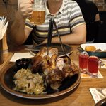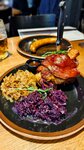 В целом хороший ресторан. Обслуживание на уровне. Вежливый и внимательный персонал, понравилось темное пиво. Скидки на пиво по вскр, пнд,вт. Очень понравились ребра и тушенная голень ( типа гуляш напоминает). Мясо нежное, порция большая. Брал брускету с селедкой - не понравилась. Это просто бутерброд с намазкой и селедкой, брускеттой назвать никак нельзя (косяк) и цена явно не адекватная - не рекомендую. Брали пикантную колбаску - большая и в целом на четвёрочку, не хватило обжарки до корочки. В целом могу рекомендовать к посещению.