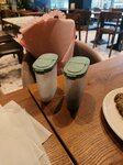 Караваевы уже не торт. Вилки и ножи только пластмассовые. Два сотрудника в зале. Очень недовольны тем, что клиенты вежливо просят их поработать. Соль и перец теперь выглядят вот так. Под девизом "приобретено в фикспрайсе" так сказать. Одна пара банок на весь зал. Придется поискать. Обожаю Караваевых, честно. Но тут что-то не так. Тлетворное влияние вокзала?