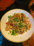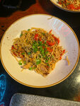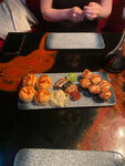 Крутое расположение, шикарный вид на компрос. Плюс что работают намного дольше чем другие подобные заведения. Нас встретил администратор и предложил несколько вариантов свободных столов. На столе приборы, кнопка вызова официанта. В воскресенье вечером работал один официант на всё заведение. Чтобы сделать заказ нужно было нажать на кнопка порядка 3 раз с периодичностью по 5 минут. Заказ ждали недолго, сначала вынесли роллы, а потом лапшу. Роллы, суши на уровне, очень вкусные, шапка у запеченных не майонезная, вкус насыщенный, рыба чувствуется. Но креветки темпура совсем неудачная позиция, сам кляр с комками, неравномерный, порой невозможно пережевать. Лапша и рис дешевле чем во многих местах, но по вкусу не хватает какого-то соуса, изюминки. По вкусу напомнили сушивок, кушать можно, но не вау.