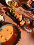 Спасибо заведению за персонал и приготовление блюд! Были в первый раз. Мест было не много, но нам выделили у окна (столик рассчитался и нас пересадили). Заказывали 2 том яма - супер, огонь и вкуснятина))) советую!!! Сет сливочный вроде - 12 роликов за 1000 - это ли не сказка (из которых 9 огонь и 3 на любителя, тобико, огурец и крабовые) и брали лапшу с морепродуктами- вкусно. В общем молодцы! Мы открыли для себя заведение, где можно покушать вкусно на Компросе!