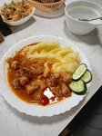 Место очень уютное, внутри современный интерьер. Меню небольшое. Брали 1 суп куриный с лапшой, 1 борщ, 1/2 борщ для ребёнка,2 салата( овощной и с колбасой), 4 кусочка хлеба, 1 картофльное пюре с гуляшом ( нежное вкусное мясо, пюре без комков) , 1 пюре с филе курицы(вкусное), 1 пюре с голенью куриной (брали ребенку) - отлично , что голень тушеная, мягкая. Дополнили прекрасный обед блинчики со сгущёнкой цена за 3 шт -90р (пекут сами), 3 компота. За всё это отдали : 1560р Объелись, кое-то пришлось взять с собой))) Итог: обслуживание ненавязчивое, приятное и доброе,встретили как дома. Туалет чистый. Есть вай фай. Работает телевизор. Помещение просторное. Внимание: обслуживание оплачивается 10 % от счета.