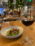 Из плюсов : Хороший выбор блюд меню и карты напитков. Все очень вкусно , заказывала теплый салат с телятиной, хинкали и ежевичное вино. Понравился интерьер ресторана, создался впечатление атмосферного места . Быстрая подача блюд. Минусы: Не стала снимать звезду , так как плюсов больше) В зале не встречают , официанта надо поймать , чтобы сделать заказ. Была полная посадка. Вино принесли не охлажденное.