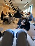 Поточный салон, повсюду грязь, работают непонятно на каких аппаратах заляпанных гелями, все работают чисто на скорость, маникюр не чистый, лампы сушат так, что такое ощущение что ногти сейчас просто сгорят, педикюрная зона вместе с маникюрной, кресла мягкие , что не соответствует нормам санпин