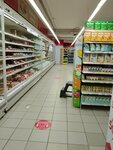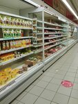 Беру здесь продукты. Удобно расположен, рядом с домом. Очередей мало так как есть ещё кассы самообслуживания. Торговый зал небольшой, но ассортимент достаточный. Иногда узкие проходы между торговыми стеллажами, с тележкой можно помешать другим покупателям. Иногда встречаются пустые полки. В самом магазине чистенько. Продавцы вежливые.