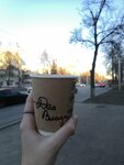 Я, конечно, не уверена, сколько должен стоить кофе, но мне показалось дороговато. Хотя, сама кофейня красивая, уютная. Есть что-то вроде барной стоечки у окна, мягкие кресла, диванчики. Во второй зал не заходила, но там, наверное, примерно также. Бариста все приятные, вежливые. На стаканчиках имена пишут, прикольно. Что на счёт самого кофе, вкусный, приготовили быстро, сердечко мне нарисовали на пенке. Единственный казус — я взяла стаканчик капучино и уже отошла от кофейни и поняла, что крышка не надевается. То ли я взяла слишком большую, то ли она просто была помятая. Тем не менее, кофейня хорошая)