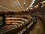 Новая сцена Мариинского театра открылась в 2013 году, и внешний облик здания нельзя назвать интересным, но как только переступить порог, впечатления от внутреннего шика, блеска и красоты останутся надолго. Стена из оникса с подсветкой, люстры из хрустальных пузырьков на невидимых нитях, лестницы из стекла, придающие парящий вид - это все очень футуристично, в современном стиле. На третьем этаже амфитеатр, на шестом этаже терраса с потрясающим панорамным видом на Санкт-Петербург. Находиться в зрительном зале на 1830 человек с потрясающей акустикой очень комфортно, на ярусах сцена видна как на ладони. По мне так это ультрасовременная театральная площадка, которая обязательна к посещению. Мы с семьей побывали на многих балетных и оперных спектаклях, но самым прекрасным для нас стал спектакль-концерт Шекспир. Шостакович. Гамлет. Валерий Гергиев выдающийся дирижер, Евгений Миронов великолепно исполнил роль чтеца 🎭 Ждем от авторов ещё больше похожих проектов🫰Особенно выделяется опера Джузеппе Верди «Трубадур», поставленная Пьером Луиджи Пицци. Костюмы, декорации, цветовая гамма прекрасно сочетаются, и конечно же, украшением оперы являются музыка в исполнении оркестра и великолепные голоса артистов.