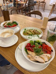 Так вроде всё хорошо и вкусно, но формат какой-то невнятный. Вроде бы какая-то изысканная еда, но заказывать надо у стойки как в кофейне. Явно никто от тебя не ожидает, что еды ты будешь заказывать как на обед. Типа, заказал что-то поклевать, кофе и пошел. Опять скорее как кофейня. Но зачем тогда такое обширное меню? Есть блюдо, которое можно заказать в варианте с лососем или без лосося. Заказали с лососем, принесли без. Не стал уже выяснять, потому что всё равно все уже оплачено и чек я не взял. Да и не до того уже было. Короче, что-то среднее между кафе, кофейней и фастфудом. Как это часто бывает в таких случаях, получилось что-то невразумительное.