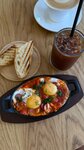 Очень вкусно! Шакшуку мало где готовят правильно) Капучино тоже с хорошим балансом молока, ароматным кофе Джаззовая музыка!, интерьер пещерный-морской, не брутальный, уютно, а главное ребята очень разбираются в том чем угощают, приятные)