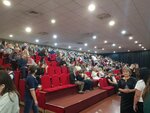 Зал небольшой, но уютный. Долго не мог найти своё место. Разделение на цветные сектора не работает так, как должно по задумке организаторов. И не я один такой был, кто не сразу нашёл своё место. Если сектора и раскрашены по цветам, то красный свет сверху перед началом спектакля сделал их все абсолютно одинаковыми - красными. На спинках стульев были приклеены наклейки с написанными маркером номерами рядов и мест. Причём с внутренней стороны, и эта надпись оставила пятно на моей рубашке! Это просто ужасно! Да и сидеть три часа на стуле - так себе удовольствие. Сам спектакль понравился, рок-опера "Мастер и Маргарита".