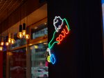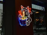 Вкусно, красиво и много неона! Очень вайбово, рекомендую обязательно посетить 🥰 Брали: - 🧀 сырный рамен - вкусно, сырно, без претензий. Лапша ручного приготовления (на вкус и текстуру), по эластичности идеально. Не приторно, всё в меру, супчик очень зашёл. - 🧋лимонад бабл Sheesh - не сильно сладкий, чувствовался вкус жасминового чая и виноградный джус-болл. Для тех, кто не любит сильно сладкие напитки(как я, к примеру) - топ! - ☕ латте лаванда - супер нежная пенка (её много) и вкусный кофе. Рекомендую попробовать, однозначно. - 🍷 глинтвейн (без.алк.) - пряный, сладкий, с небольшой горчинкой лайма. Вкусно, можно брать❣️ - 🧇 паннопан (рыбка) - с шоколадным вкусом. Вкусненько, ничего супер-особенного. Немного непропёкшийся внутри(частично), а так нормально. Попробовать на 1 разок.