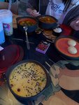 Пишу новый отзыв, так как решила сходить снова и посмотреть улучшилось ли все. Еда стала лучше, том ям острый и вкусный, как надо. Сырный рамен хорош, но чего-то не хватило мне, но это норма. Барбекю токпокки хороши(моему мужу понравились) А вот с моим напитком что-то было не так половина шариков тапиоки были жесткие и при жевании их внутреннее было сухое и противное((( У мужа с напитком все было в порядке, так что не знаю, что говорить Обслуживание хорошее, об этом прям хорошо позаботились Персонал отзывчивый Атмосфера как подобает Подарили коробку карточек(на фото есть), к том яму и к сырному рамену еще подали рисовых булочек