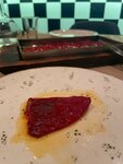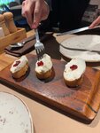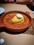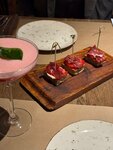 Паэлья очень вкусная, брали микста (мясо и морепродукты) и мясную, обе идеальны. Порции большие, вкус выше всех похвал, подача красивая. Тапас с тунцом скрасили ожидание паэльи. Сюрприз ожидал в одном из десертов, в крем каталана под сорбетом были лепестки миндаля, попросила сделать без ореха, сначала девушка колебалась и сказала «мы не можем переделать, он же уже приготовлен», но, к счастью, пошли на встречу, переделали, ведь о наличии ореха в блюде нигде не говорится и никто не предупреждал, а в классическом рецепте их нет. И это восхитительный десерт, наслаждалась каждой ложкой, очень нежный вкус самого крема, карамелизированная сладкая корочка, на контрасте с кисловатым сорбетом. Второй десерт сильно удивил, это был карпачо из ананаса, в островатом маринаде, с сорбетом и желе из лайма. Это необычно, попробовали что-то новое. Вечер сопровождался живой музыкой - скрипкой. Красиво, приятно, атмосферно. Ну, а уроки испанского в уборной - Muy bien😅 Обязательно вернемся! Домой забрали банку солений, за ними тоже вернемся) Хотела бы предложить ввести в меню безалкогольную сангрию) понятно, что это будет всего лишь аналог, а не оригинал. Но для поддержания атмосферы, было бы идеально♥️
