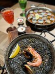 Зачем платить и сдавать ПЦР, если можно оказаться в Испании не выезжая из Москвы? Испанское радио создаёт непередаваемую атмосферу, очень уютно, а какая потрясающая здесь паэлья! Заказали чёрную и паэлью микста, также очень вкусные закуски - кальмар и морепродукты в кляре, наподобие итальянского fritto misto. Также есть достойное белое вино, а коктейль aperol spritz просто огромный, рекомендуем 10 из 10
