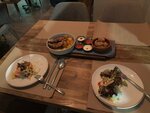 Плюсы: в целом неплохое место, вкусная кухня, выступает харизматичный певец и гитарист в одном лице. Весёлая, расслабленная атмосфера, но в то же время есть возможность уединиться и найти место, где не будет шумно. Минусы: в салате с маринованными креветками не оказалось креветок. Такое бывает, ничего страшного. Но официант не извинившись забрала блюдо прямо из рук во время еды и сказала, что сейчас нам его переделают. Забирать блюдо в процессе еды некрасиво. И в крокетах с хамоном не почувствовал хамона 🤷‍♂️
