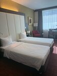 Останавливалась пару раз в этом отеле. Из плюсов: Просторные номера, светлый и чистый санузел. Мне без проблем поменяли номер на раздельные кровати, когда я ошибочно заказала одну большую кровать для меня и подруги. Есть холодильник, которым теперь можно пользоваться без депозита. Раньше там был минибар, и приходилось оставлять депозит, чтобы им пользоваться. Даже если ты ничего не брал в холодильнике. Теперь они стоят свободные, и все можно приобрести внизу у зоны ресепшен. Есть тапочки и халаты. Утюгом не пользовалась, он вроде в коридоре с доской или надо спрашивать у горничной. Есть кондиционер. В номере есть чайник, по бутылке с водой на каждого гостя, чай чёрный и зелёный, растворимый кофе в пакетиках и сливки отдельно. Есть все предметы для гигиены одноразового использования: щётки зубные и паста, палочки ватные, шапочки полителеновые, кондиционер для волос, Шампунь и мыло в диспенсерах. Из минусов: не открываются окна для проветривания. Видимо в целях безопасности. Я просто люблю свежий воздух. Завтрак я не брала. Он стоит отдельно 1700 или 1900. Не помню. Рядом есть рестораны и кафе, магазины, где можно перекусить или купить в номер еду. Мы приезжали на семинар в лайф арену одинцово, добирались в отель с арены на такси минут 20, а утром к арене подъехали на автобусе тоже заняло по времени 20 минут. Только было намного комфортные. Остановка рядом с гостиницей. А еще раз мы приезжали на машине, и ставили на парковку отеля. Не помню сколько стоило. Тоже удобно.