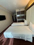 Отель заслуживает свои 4 звезды, номер стандартный (2 кровати, стол, телевизор, 2 кресла, шкаф, чайник, холодильник) чистый, убирают каждый день. Так же у на был включён завтрак: шведский стол, еда очень разнообразная ( омлет, яичница, сырники, творог, овощи, фрукты, мясная и сырная нарезка, выпечка и многое другое). Персонал вежливый, все наши немногочисленнык просьбы были выполнены. На нашем этаже была гладильная комната, что немаловажно:) Так же в отеле есть фитнес зал. На первом этаже есть ресторан.