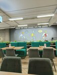 Просторное помещение. Не смотря на большое количество посадочных мест, имеется пространство. Приятная музыка, вежливый персонал. Что касается еды, большой выбор блюд, имеются комплексные обеды. Так же, здесь есть скидка пенсионерам, студентам и военным 20%.