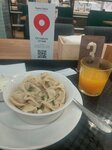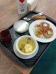 Очень странные впечатления. С одной стороны, организация пространства хорошая - удобные мягкие стулья, столы не впритык, туалеты, просторная раздача. С другой - еда не порадовала. "Рассольник" ну это перловка+картошка+видимо крахмал, густая жижа. Куриный суп пересолен. Пельмени сойдет, вареники норм, кофе норм. Но кроме этого, непонятно, что еще можно взять. Плюс их в том, что работают с 8 утра, но как бы и вот.