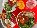 Утро воскресенья. Заходим- говорят мест нет. На улице пустые столики. Возвращаемся- сообщаем о пустых местах. «Тогда да, садитесь». Мне принесли шакшуку минут через 40, пока не попросили приборов их тоже не было. Мужу заказ принесли через час. Причем в меню указан мужской завтрак с ростбифом, а уже после заказа нам сообщают что он изменен, и вместо ростбифа там бутерброд! Который, кстати, был холодный. Впечатление о заведении испортилось. Столики вокруг также были недовольны такой долгой отдачей блюд.