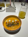 Вкуснейший тыквенный крем-суп с креветками. Лимонад маракуйя-персик освежающий и ароматный. Отдельная благодарность официанту Милане за хорошее настроение и внимательность🩷 Интерьер, музыкальное сопровождение и атмосфера на высшем уровне!