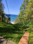 Пляж оснащен всеми удобствами - раздевалки, душ, шезлонги. Есть закусочная, волейбольная сетка, организовано катание на надувных подушках/бананах в подходящую погоду. Мы отдыхали в августе, в солнечные дни народу было предостаточно на пляже, поэтому к удобствам выстраивались очереди, как и в любом курортном месте. Туалет есть платный возле спуска с канатной дороги. Все чисто, аккуратно. Песочек мягкий и приятный. Вода - бодрит! Вобще находиться на пляже комфортно в плане температурного режима для организма - не сгораешь от жары, и не холодно. Это при 23-25 градусах. По безопасности - спасатели регулярно напоминают о зоне для купания. За буйки не заплывать!