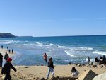Классный пляж, мелкий песок, спускаться только долго. Не повезло с погодой, но и в 17 градусов воздуха, море теплое, говорят из-за течения. Одна особенность это особо ретивые спасатели, которые ходят по пляжу и орут на тебя в мегафон, что в воду нельзя далеко заходить, хотя на 30 метров от берега воды по колено