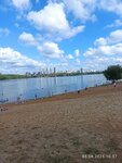Нам очень нравится этот пляж! Песочек,водичка,солнышко, супер!!! Теперь по делу! Вход в 2025 году 400 рублей со взрослого и по 100 рублей с детей, достигших возраста 7 лет, и пенсионеров. Для многодетных вход бесплатный. Терия большая, но тенистых мест не достаточно на мой взгляд. Зато наличие душевых и переодевалок значительный плюс. В переодевалках есть крючки,что тоже не мало важно. Также на территории есть детская площадка при входе справа, небольшая,но с качельками. Есть так же надувной батут платный,цену не могу подсказать, не узнавала. Есть мороженое, горячая кукуруза, шашлык,пиво, чипсы,цены,конечно, не самые бюджетные,но так чтобы вы понимали, мороженое стоит 250 рублей, 180 рублей фруктовый лёд. Мы ездим туда со своей провизией и водой, термосумка и ладушки. Что хочется отметить,это "лягушатник" для детишек до 7 лет, кстати, забыла написать в начале, что вход для детей до 7 лет бесплатный. На противоположном берегу находится вертолетная площадка.