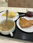 Неоправданно высокая цена за такое качество... Средний чек далеко не 300 р. Максимум только за завтрак ребенку. Зашли поужинать... Нас встретили залежалые салаты, заветрившаяся выпечка и не только. Все какое-то пресное и в большинстве невкусное. Будто на продуктах экономили как могли. Пожалуй из вкусного оказался только фруктовый чай и купаты. Еду приходится самим накладывать да ещё и в разные тарелки (гречка отдельно, котлета отдельно и т.д.). В итоге куча подносов с горой тарелок, которые так и норовят соскользнуть и разбиться. Брала маленькие порции, но лучше б вообще не брала. Оплата только наличными, которых с собой не было. Так как уже не было возможности искать другую столовую пришлось бегать и искать банкомат. Вообщем, вкусно и бюджетно покушать здесь не получится. Удовольствие от приёма пищи даже за деньги не получить. Не рекомендую.
