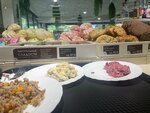 Выбор большой, но ценообразование странное: жареная картошка и сельдь под шубой одинаковой стоимости за 100 грамм, при то что вас легко обвесят минимум на 100грамм то вы можете поесть самый простой салатик по цене полноценного второго блюда с мясом. Так что смотрите внимательно на чеки.