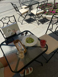 Очень красивая терраса Взяла пасту, в целом хорошая, но не хватило насыщенности вкуса и соли, на столах соли тоже нет. Лимонад переслащен, попросила долить содовой, но не спасло. Из значимых недостатков - от ветра упал наш зонт, когда мы сидели на террасе. Благо, не на нас. Свалился за секунду, я не успела бы даже встать, если бы падал в сторону стола. Тяжелый, железный, было довольно опасно.