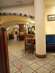 Не плохое кафе-ресторан, один сорт нефильтрованного пива и тот со вкусом банана, для кругозора - можно попробовать , из еды- куриный суп , посредственный, шницель из трех видов мяса - не очень, жареная мойва обычная. На нг праздини дали комплимент только мне( девушке) кусок пирога , кстати вкусного.