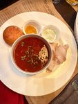 Выбор пал на это заведение случайно, но оказался прямо удачным. Еда вкусная, сидр отличный, подача быстрая, скатерти чистейшие, диваны удобные, и в целом атмосфера уютная какая-то. Прекрасно провели вечер небольшой компанией. Из еды особенно понравились борщ (какая к нему подаётся хрустящая булочка!) и форшмак. Отдельный респект хозяину заведения, который нас в этот вечер и обслуживал. Человек по-настоящему любит этот бизнес, у него, что называет "глаз горит", идеи рождаются. Будем ждать появления в меню обещанных пельменей с дичью и обязательно вернёмся ещё :)