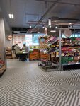 Нормальная Пятерочка, есть все основные продукты и товары, в магазине есть банкомат Сбербанка. Перед магазином есть парковка, мест очень мало, дорога на подъезде к магазину разбита как после бомбежки(((