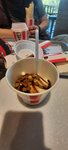 Ждал заказ 30 минут, вытаскивали еду из моего заказа для других клиентов. По итогу я получил холодную еду и то по частям потому что половину они просто забыли выдать. Крайне не рекомендую посещение данного заведения. Курица была вся в масле, без панировочных сухарей. Картошка холодная и пережаренная. Ещё ко всему прочему ужасный туалет в котором прибирались скорее всего в момент открытия KFS.