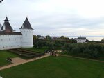 Впервые приехали в Ростов Великий, выбрав для нашей поездки воскресенье-понедельник, чтобы избежать больших толп туристов в кремле. Приехали в город в начале второго, большие автобусы уже начинали постепенно разъезжаться, никаких очередей в кассу кремля мы уже не застали и гулять по полупустому Кремлю было очень приятно. Мы взяли групповую экскурсию на 1,5 часа за 900 рублей с человека, которую предлагает сам кремль. Такие экскурсии проходят 3 раза в день, в 11,00, в 13.00 и 15.00 часов. Экскурсия на тему «Архитектура кремля, переходы по стенам кремля с осмотром интерьеров храмов Воскресения, Иоанна Богослова, Спаса на сенях, музея церковных древностей в Белой палате». Экскурсию вел гид, которая нам очень интересно все рассказывала, мы прошлись практически по всем переходам стен. В конце послушали пение вокального ансамбля Ростовского кремля в храме Спаса на Сенях. Там такая акустика, такой звук!!!! Сеансы проходят в начале каждого часа с 11.00 до 16.00. Потом поднялись на колокольню. Подъем не долгий, но там достаточно узко и ступеньки крутые, спускаться тяжело. Но вид сверху на Соборную площадь открывается шикарный!